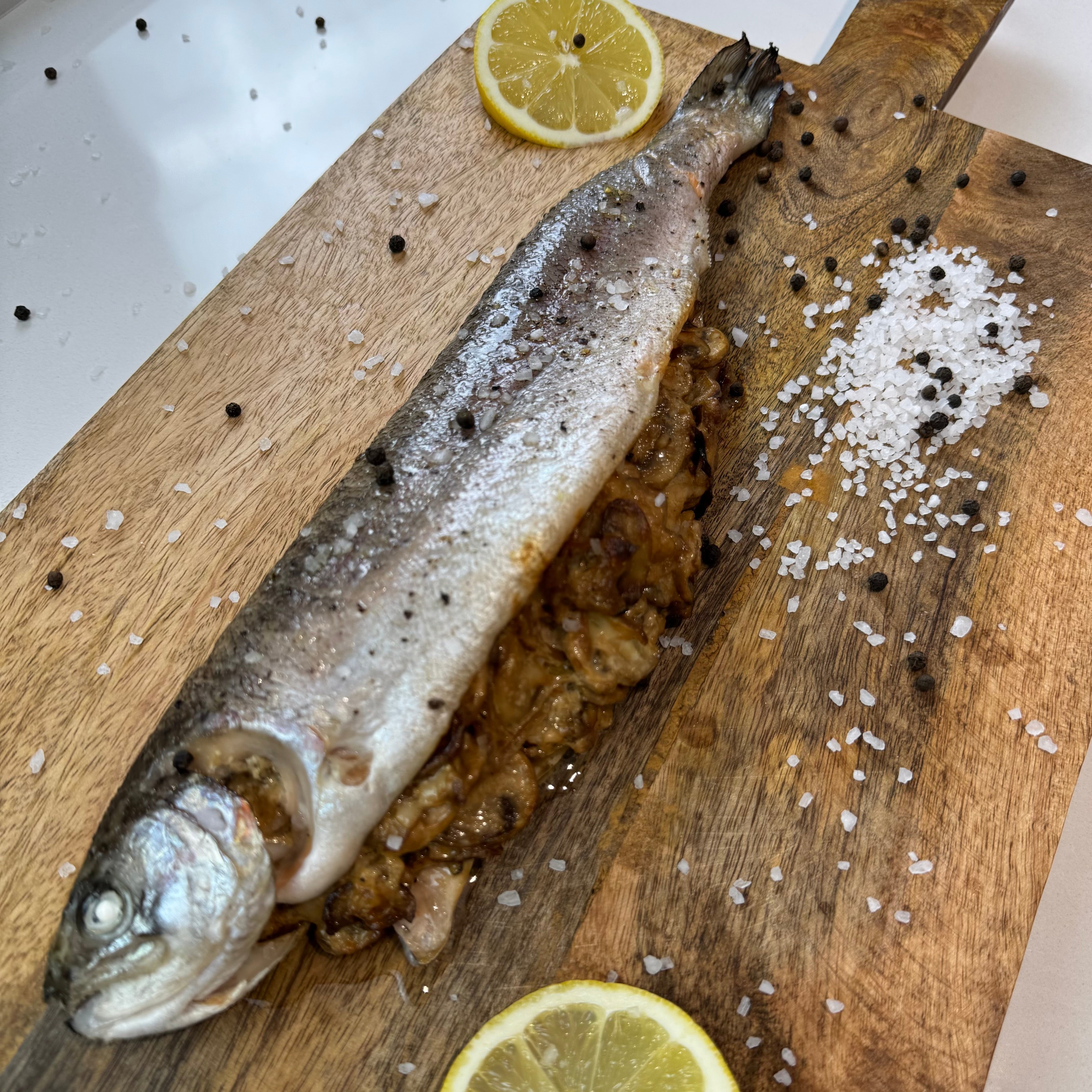 En nuestra familia, a este pescado se le llama pez hechicero, porque mi marido dice que acabó enamorándose de mí después de probarlo))) Ingredientes: Trucha - 1 pequeña por ración, o mediana para ...