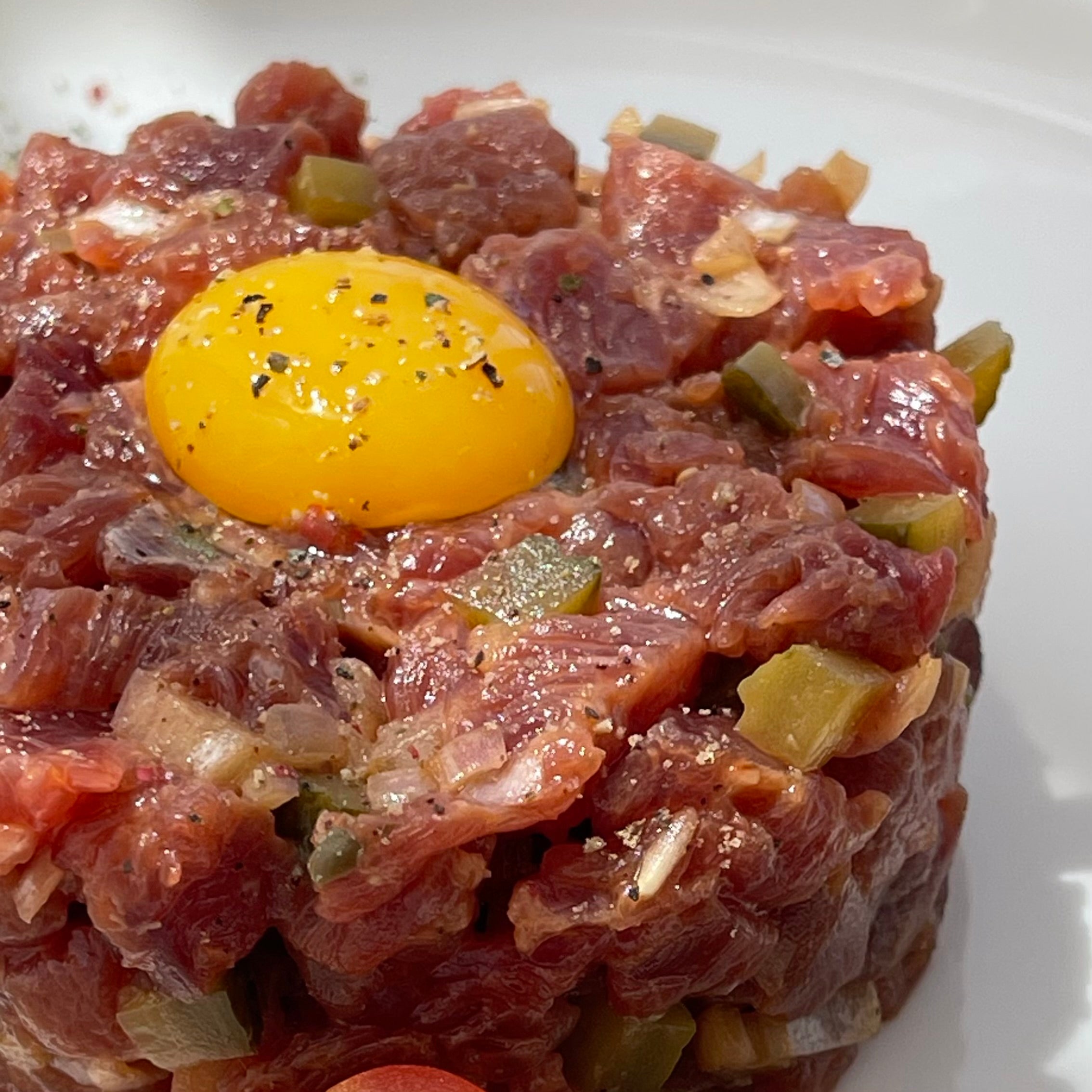 Sin ser demasiado modesto, he aquí la receta del tar-tar de ternera más delicioso.Para 2 porciones:250 gramos de solomillo de ternera seleccionado30 gramos de chalotas30 gramos de pepinillos5 gramo...